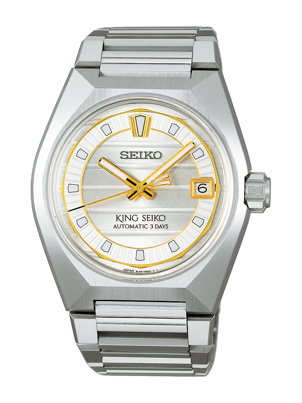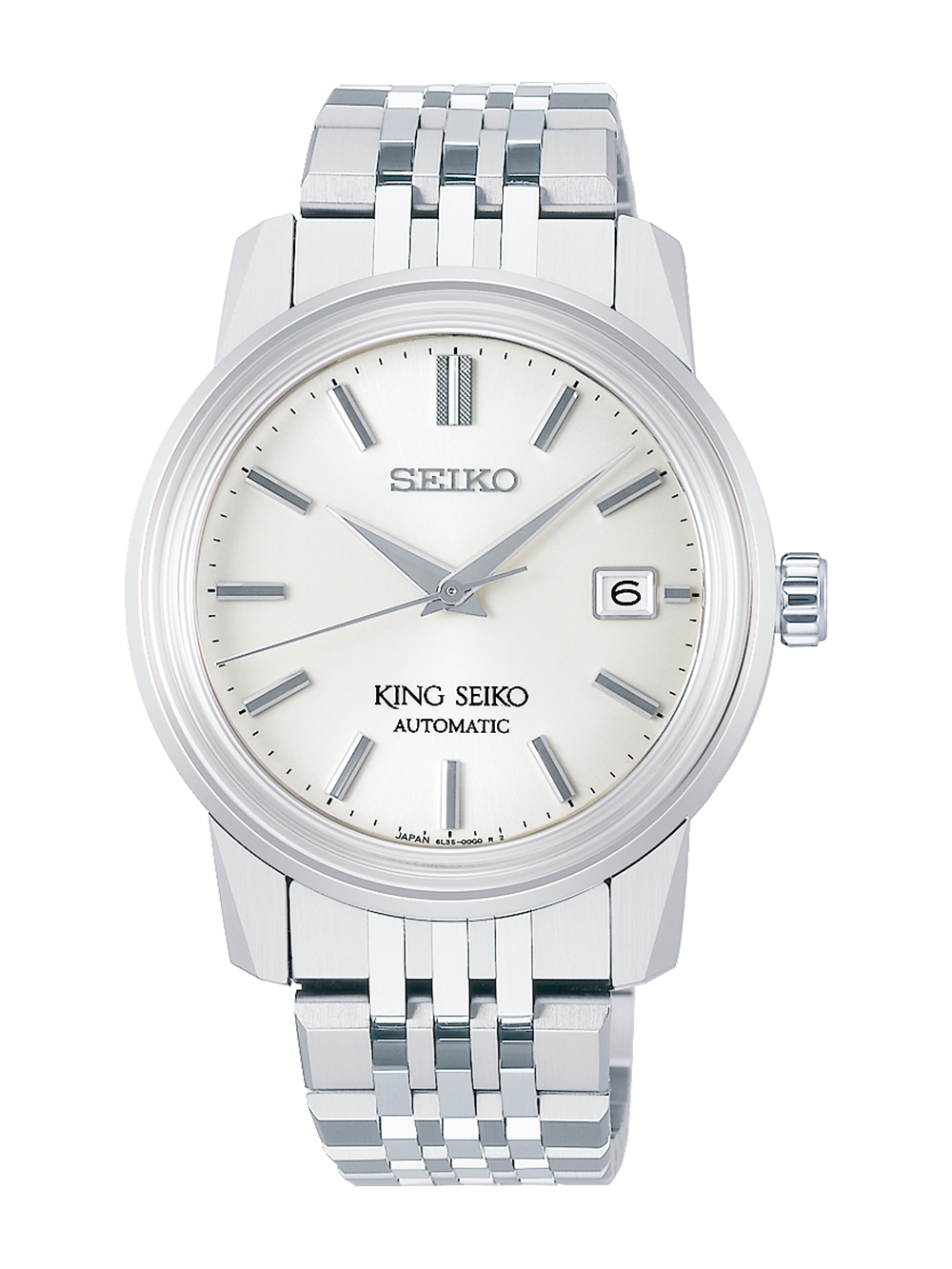 1965年に誕生した初代「キングセイコー ・KSK」のこだわりを受け継ぐレギュラーモデル。無駄のないダイヤルレイアウトにエッジを際立たせたシャープなケーススタイリングやボックス型のガラス形状など、オリジナルデザインを踏襲しながらも現代的なスタイリングに進化させています。堂々とした太く長い3面カットの時分針を採用することで視認性と高級感がさらに高まり、大胆な多面カットが施されたケースには鏡面仕上げとヘアライン仕上げを組み合わせ、ダイヤルには繊細な放射模様を施して「KSK」のオリジナルモデルが持つ滑らかで上品な質感が再現されております。