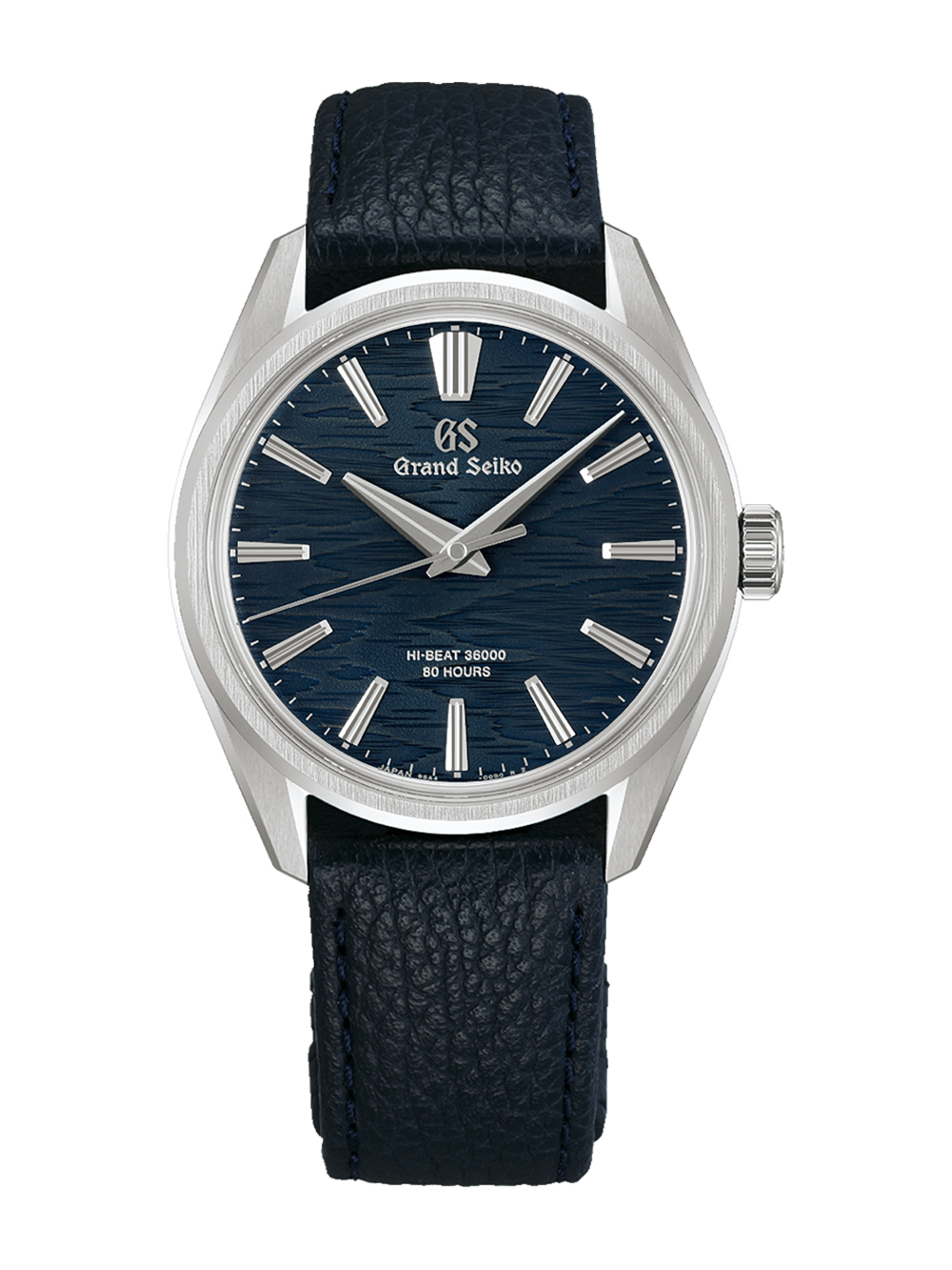 日本の技術・技能の粋を結集させた「エボリューション9」コレクションより2025年・新作モデルが到着。グランドセイコー機械式時計の製造拠点「グランドセイコースタジオ 雫石」の近くに群生する白樺林をモチーフとし、ネイビーカラーのダイヤルは月あかりに照らされた白樺の樹皮をイメージしております。ステンレススチール製のケースは厚さ9.95mmと薄型に仕上げ、すっきりとしたインデックスやベゼル、ラグの幅がグランドセイコーのドレスウオッチにふさわしい繊細で優美なる存在感を演出。ムーブメントは、毎時36,000振動のハイビートかつ80時間のロングパワーリザーブを誇る「キャリバー9SA5」を搭載しております。