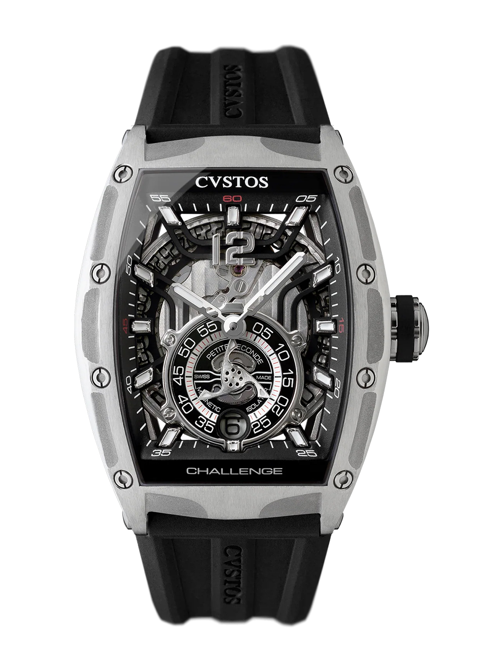 "究極の航空機" をコンセプトとした『チャレンジ・ジェットライナーⅡ P-S オートマティック』より、36mmケース径のコンパクトサイズが登場。ハイテク・スポーティー・エレガンスという「クストス」ならではのDNAをスタイリッシュに体現するスケルトンデザインの時計ケースには、ポリッシュ仕上げ・サテン仕上げ・サンドブラスト仕上げと3種類の高度な仕上げが施されており、立体感と高級感が際立っております。ムーブメントには微弱な永久磁石でスモールセコンドの駆動を安定させる新技術を採用したメカニズムを搭載し、その優美で滑らかな駆動をサファイアクリスタルのスケルトン文字盤からじっくりとご鑑賞・ご堪能頂けます。