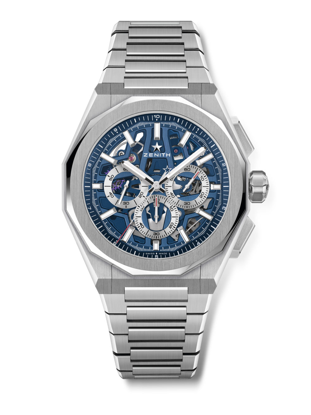 1865年創業、スイス屈指の名門マニュファクチュールブランド「ゼニス」より、1/10秒計測機能を備えた高振動自動巻ムーブメント「エル・プリメロ」を搭載した2025年新作モデルです。「デファイ・スカイラインクロノグラフ」コレクションから待望のスケルトン文字盤が登場。初期の「デファイ」の八角形ケースと多面のベゼルをモダンにアレンジして先駆モデルの堅牢性と耐久性を受け継ぎながら、よりエッジの効いた現代的な美しさを完成させています。316Lスチール製ブレスレットの他、ラバーベルトが付属されており、クイックストラップチェンジ機構により2種類のベルトを簡単に交換することが可能です。