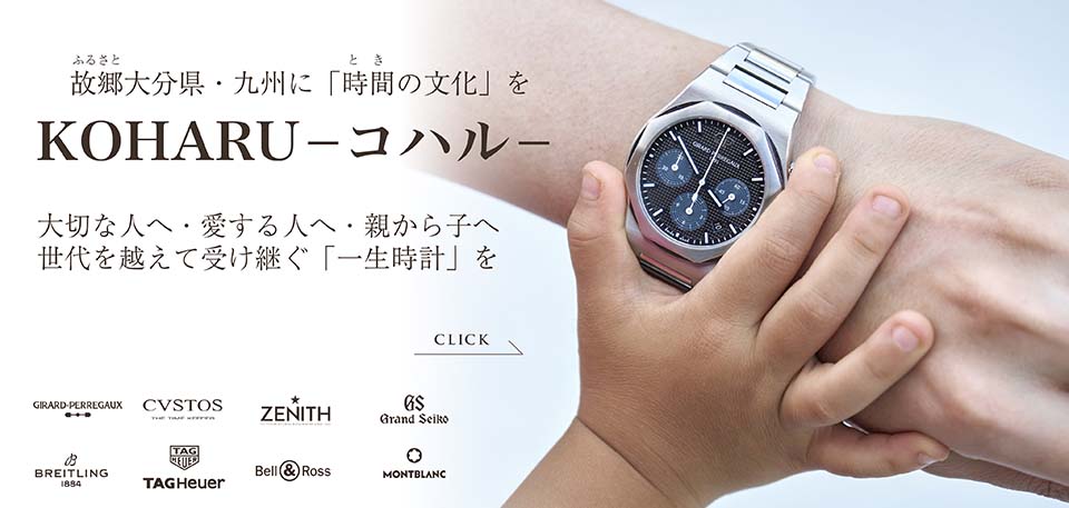 これからも九州から機械式時計の文化と感動をお伝えするという使命を持って大分県に根差し、皆様の大切な人生において、これからの時間を共に刻み続ける「一生時計」をKOHARUスタッフ一同、真心と情熱を込めてご紹介して参ります。