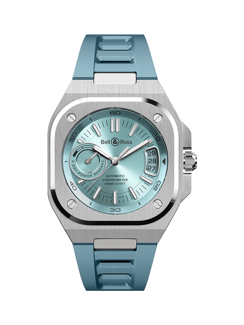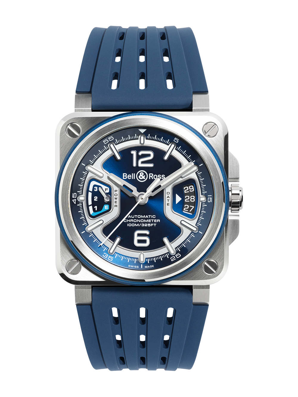 フランス発・スイスメイドの高級ミリタリーウォッチブランド「ベル&ロス」より最新コレクションが上陸。航空の世界からインスピレーションを得た、プロフェッショナルの為のインストゥルメント・ウォッチ「BR-03」を更に昇華させた41mmのケースに、ケニッシ社との共同開発による自動巻・マニファクチュールムーブメント「BR-CAL.323」を搭載。COSC認定の高精度と、約70時間のロングパワーリザーブを誇ります。航空宇宙の旅を想起させるサンレイブルーのダイヤルに、X字型デザインのメタリックな装飾が巧みに配置されたデザインはスタイリッシュでありながらも視認性に優れており、卓越したパフォーマンスを発揮してくれます。