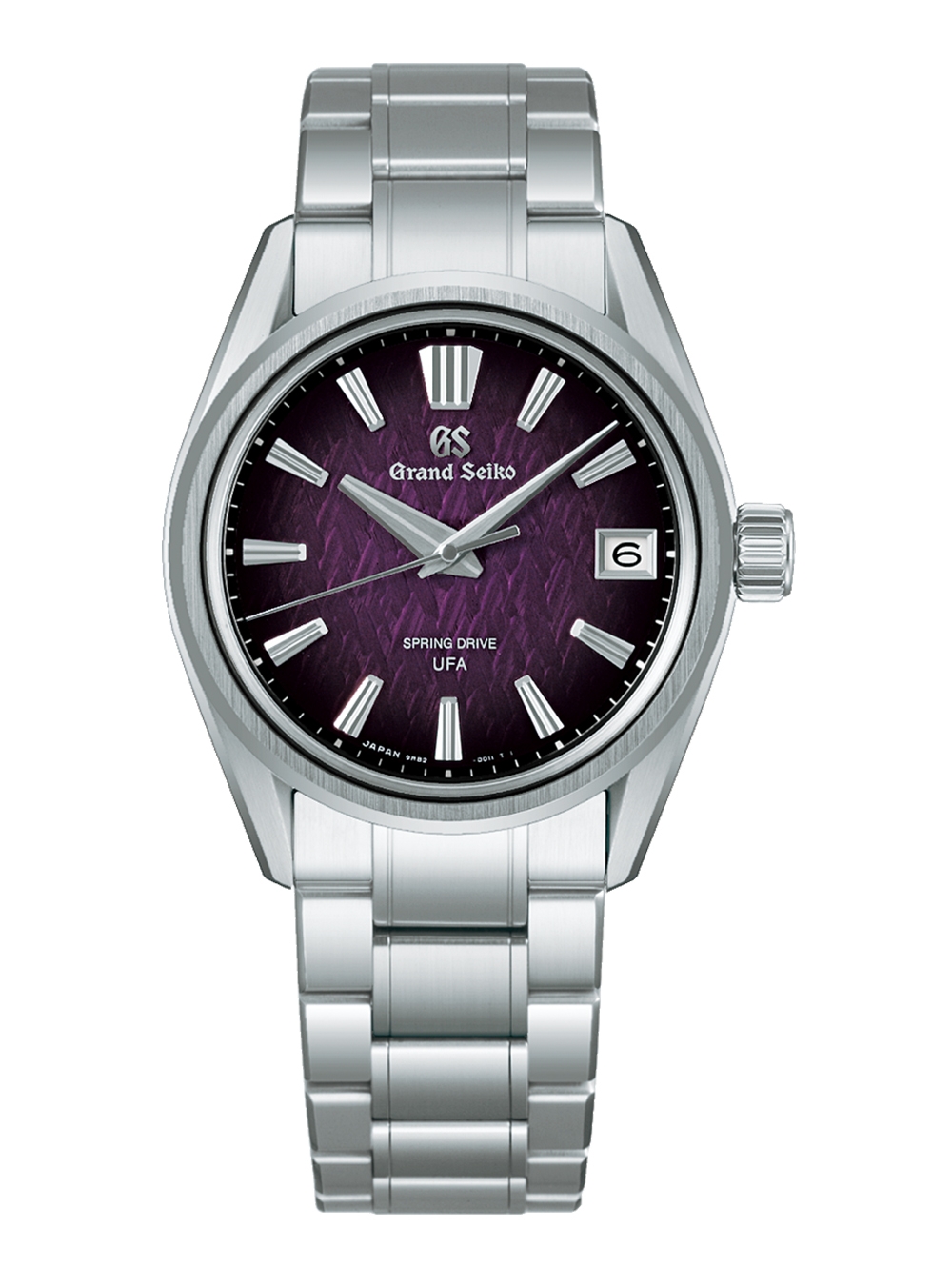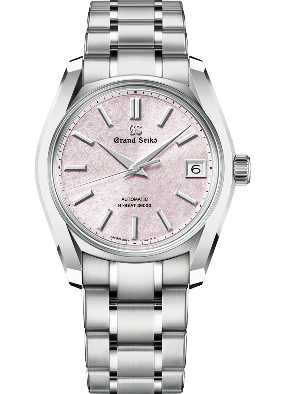 グランドセイコー初の自動巻メカニカルモデル「62GS」のデザインを現代的にアレンジし、日本特有の季節の移ろいをダイヤルに宿した作品です。桜の花を雪が覆い隠す情景は「グランドセイコースタジオ 雫石」が位置する東北地方で春のはじまりに見られる風物詩。その「桜隠し」の風情を腕時計のダイヤルで表現しました。ムーブメントには毎秒 10 振動のハイビートムーブメント「キャリバー9S85」を搭載して精度のばらつきを抑え、より安定した高精度を実現しています。ケース径38mmのサイズに、ケースとブレスレットには通常のチタンよりも傷つきにくく、白く美しく輝くブライトチタンを採用して心地よい装着感を創出しました。