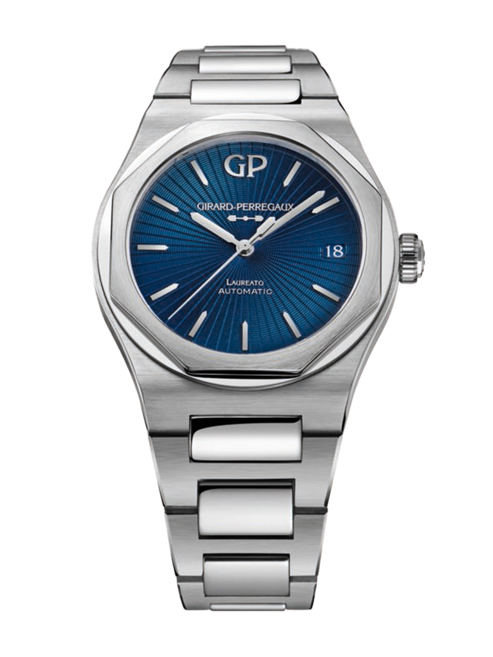 1975年誕生のラグジュアリー・スポーツウォッチの傑作「ロレアート」コレクションより、スイスと日本の国交樹立160周年を記念した日本限定モデルです。ジャパン・ブルーと表現される「藍色」の文字盤は、ギヨシェ彫りの上に「グラン フー・エナメル」を施す伝統的なフランケ技法が施されており、その透明感のある艶と色彩は長い歳月が過ぎても褪せることなく、永きに亘り瑞々しい光沢と外観を保つ事ができる芸術品にも匹敵する美しさと感動を兼ね備えております。ムーブメントは、スイスのラ・ショー・ド・フォンにある自社工房で組み立てられた自動巻きキャリバー「GP01800」を搭載。繊細で美しいムーブメントの駆動は、サファイアクリスタル製の裏蓋側から、じっくりとご堪能・ご鑑賞頂く事が可能です。